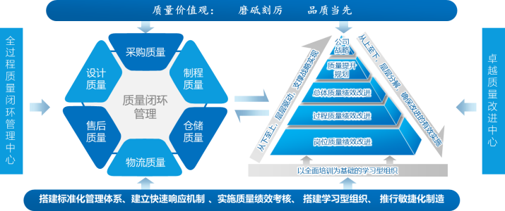 公司重視過程質(zhì)量管理,在產(chǎn)品設(shè)計(jì)階段開展新產(chǎn)品質(zhì)量策劃與預(yù)防工作,通過運(yùn)用FMEA、技術(shù)評(píng)審和質(zhì)量門等管理手段,從設(shè)計(jì)端預(yù)防產(chǎn)品設(shè)計(jì)缺陷;制程端通過ERP、MES、PLM、DNC等軟件實(shí)現(xiàn)系統(tǒng)數(shù)據(jù)標(biāo)準(zhǔn)化,形成了智能車間系統(tǒng)集成,結(jié)合工藝標(biāo)準(zhǔn)化管理減少制程質(zhì)量波動(dòng),更好的為客戶提供高品質(zhì)、可信賴的產(chǎn)品和服務(wù)。